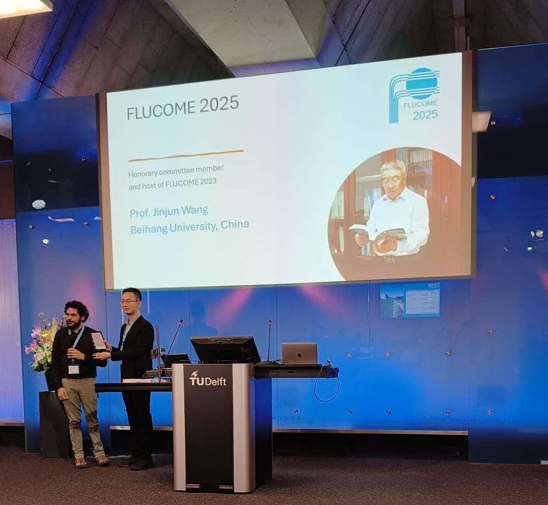 2025年11月5日,在荷兰代尔夫特理工大学(TU Delft)举办的第17届流动控制、测量与可视化国际会议(17th International Conference on Fluid Control, Measurements, and Visualization,2025年11月3-7日,简称FLUCOME2025)上,会议委员会授予王晋军教授NAKAYAMA奖章,以表彰其在会议组织与举办方面作出的重要贡献。